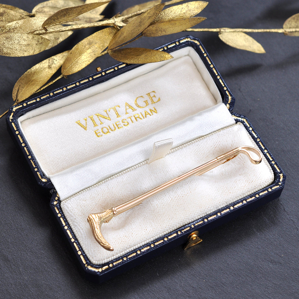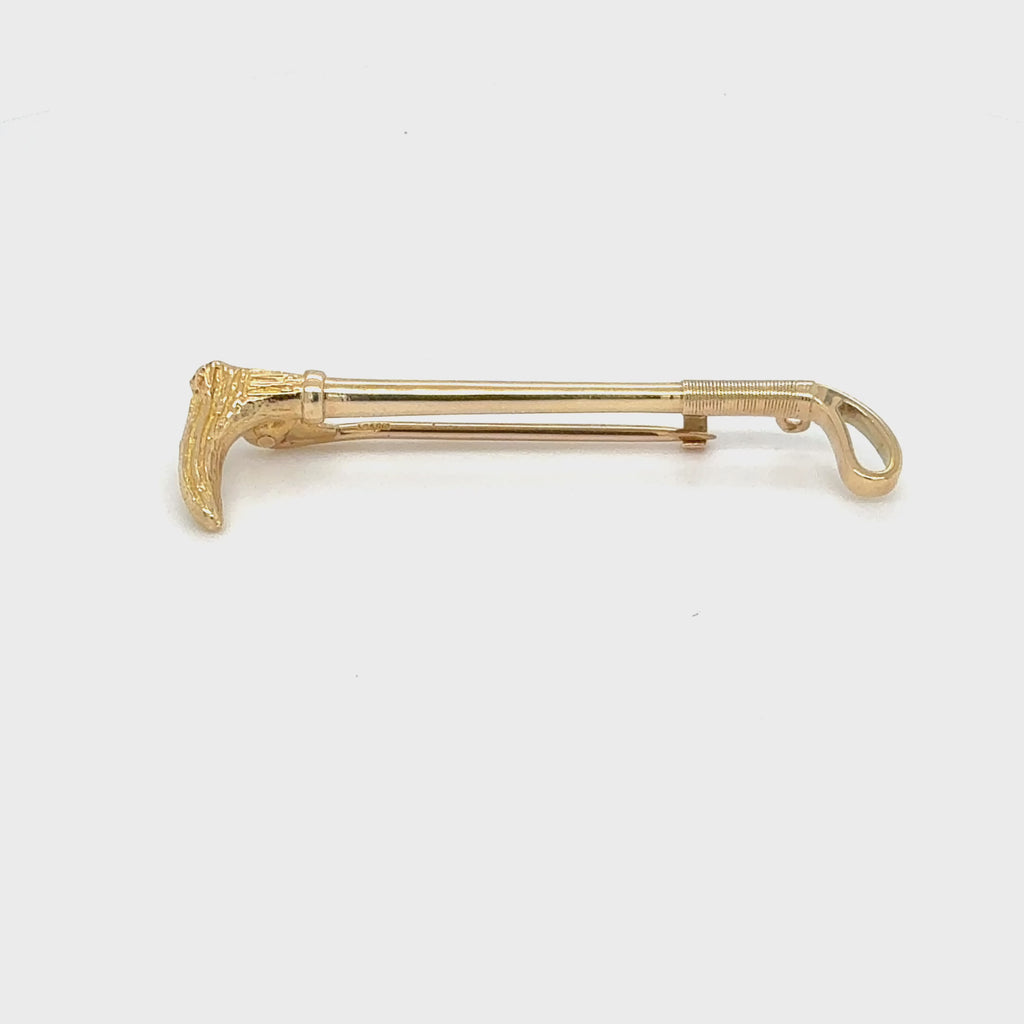9ct Yellow gold whip stock pin. Hallmarked and dated Birmingham UK 1959.