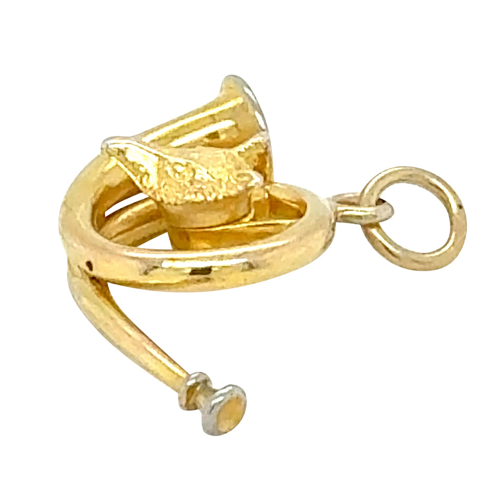 Victorian 15ct yellow and white gold hunting horn pendant with a fox head to the centre. Circa 1890.