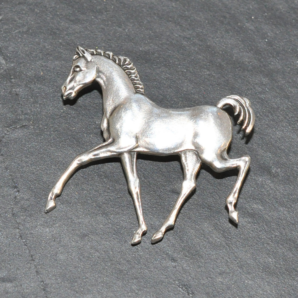Silver Horse brooch by 'Ivan Tarratt' marked Ivan Tarratt, 'signed' Tonie Taylor. Hallmarked and dated Birmingham UK 1963.
