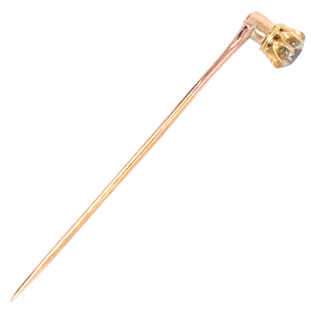 15ct Yellow gold tie pin with a single Victorian cut diamond in a claw setting. Diamond 0.36cts, Colour I, Clarity VS.