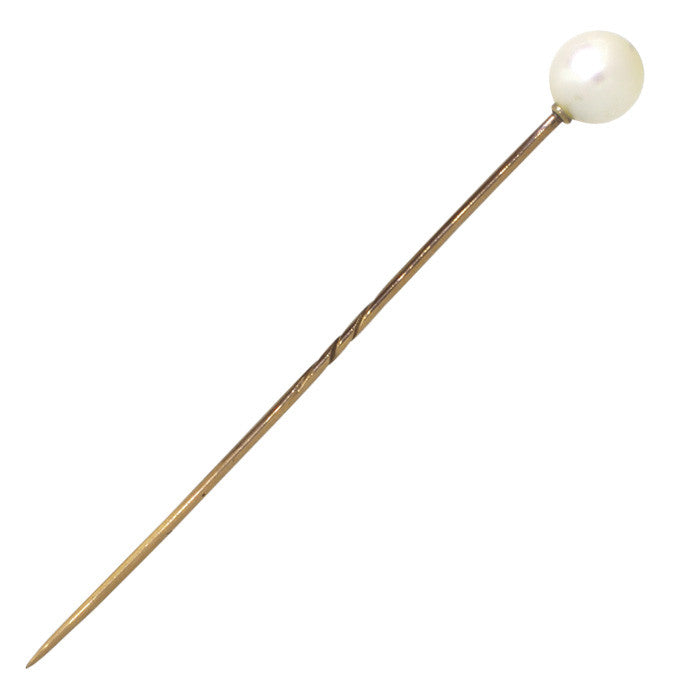 Single cultured pearl set to a 9ct gold pin circa 1900.