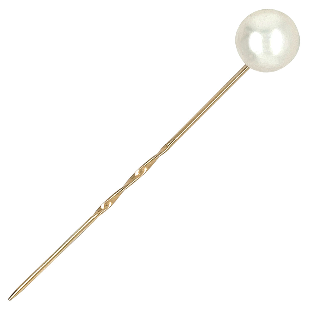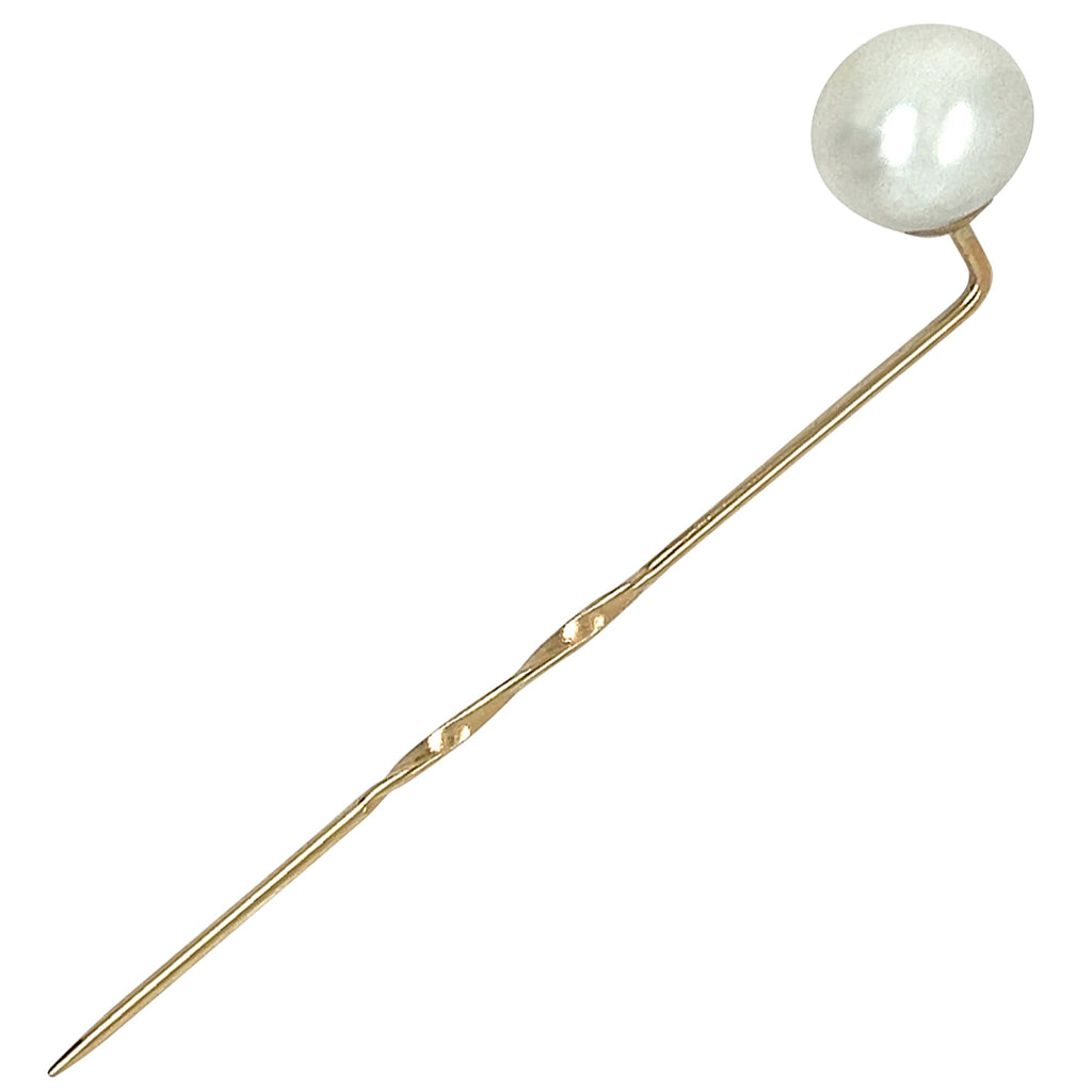 Single cultured pearl set to a 9ct yellow gold pin.