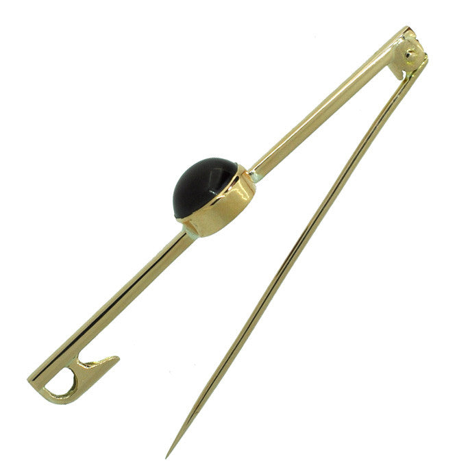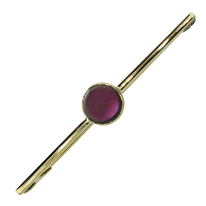 Stock Pin set to the centre with a single cabochon cut garnet, tested with acid as 9ct rose gold, circa 1930's