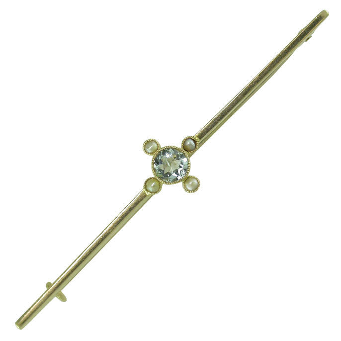 Aquamarine and pearl stock pin, tested with acid and stamped '9ct', circa 1930's