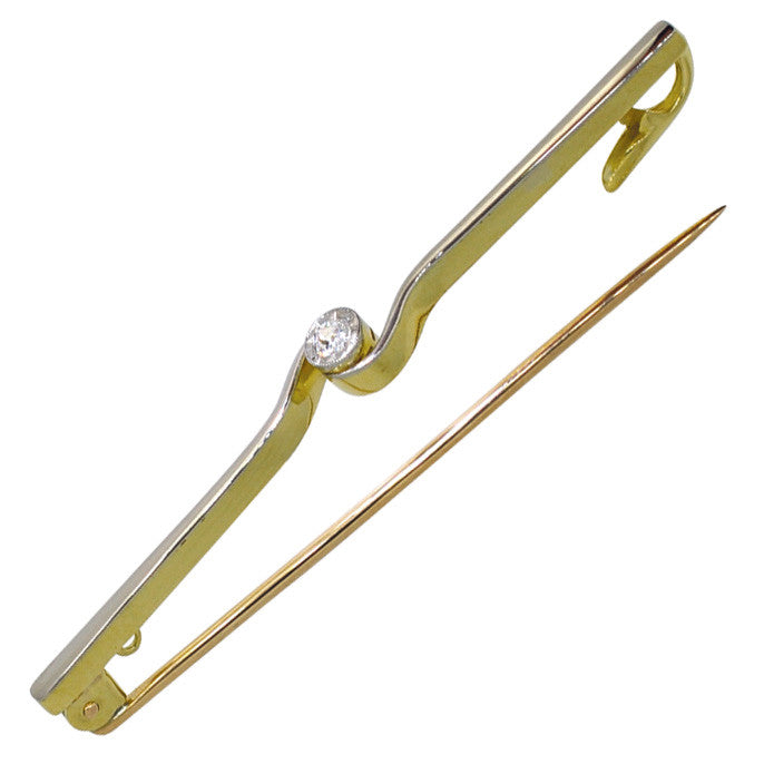 Stock Pin set to the centre with a single diamond (appx. 0.05cts) on a plain cross-over bar, marked '15ct PLAT' tested as 15ct yellow gold and platinum, circa 1930's