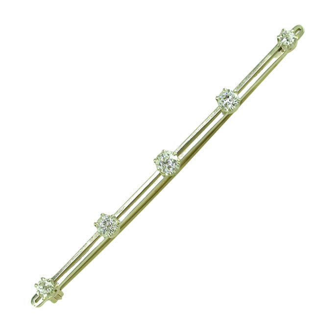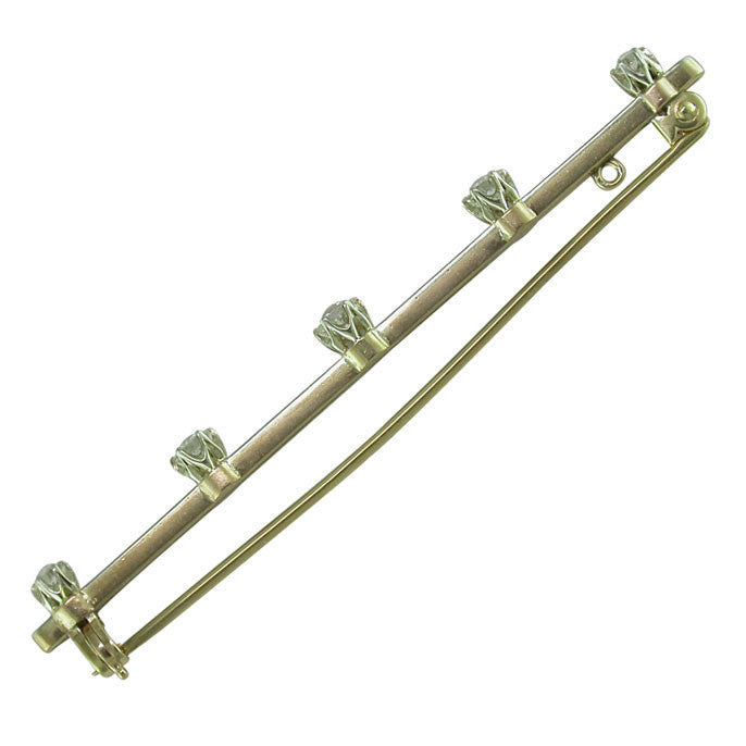 Five stone Victorian cut diamond (total weight apps. 0.60cts) stock pin. Tested with acid as 15ct yellow and white gold. The pin tested as act yellow gold. Circa 1900, with safety catch.