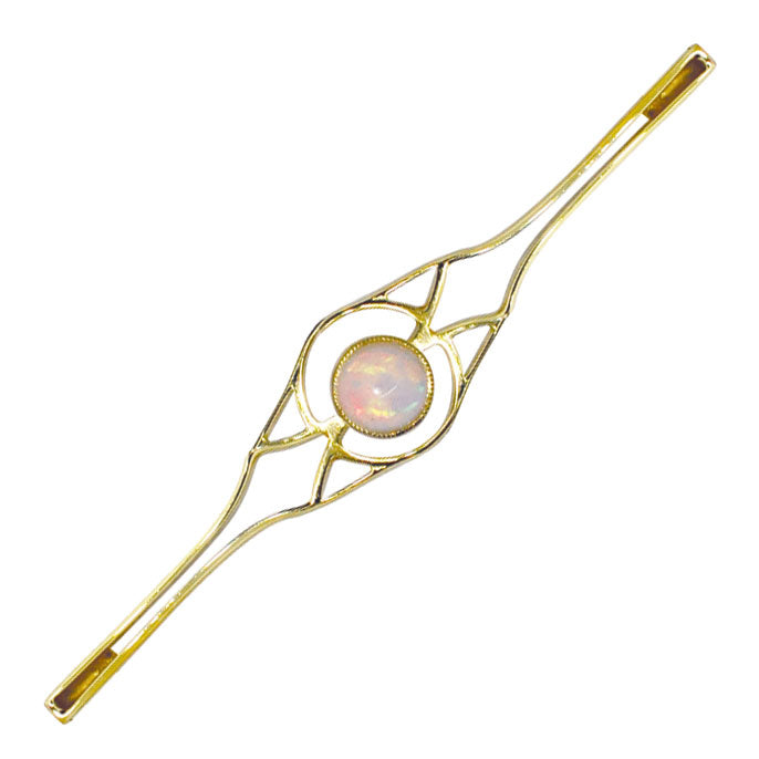 Edwardian 15ct yellow gold stock pin with a single opal set to the centre. Circa 1910.