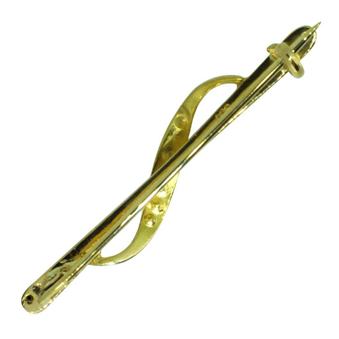 Gold Edwardian stock pin with gold ribbon set with 7 seed pearls to the centre. Tested as 9ct gold.