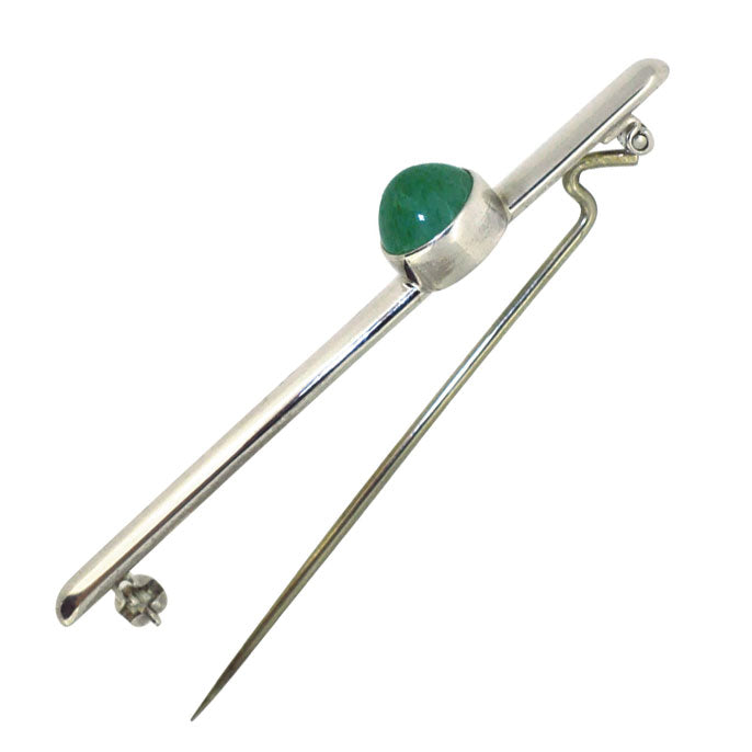 Silver bar with a single round feldspar set to one end. Hallmarked and dated London 1981.