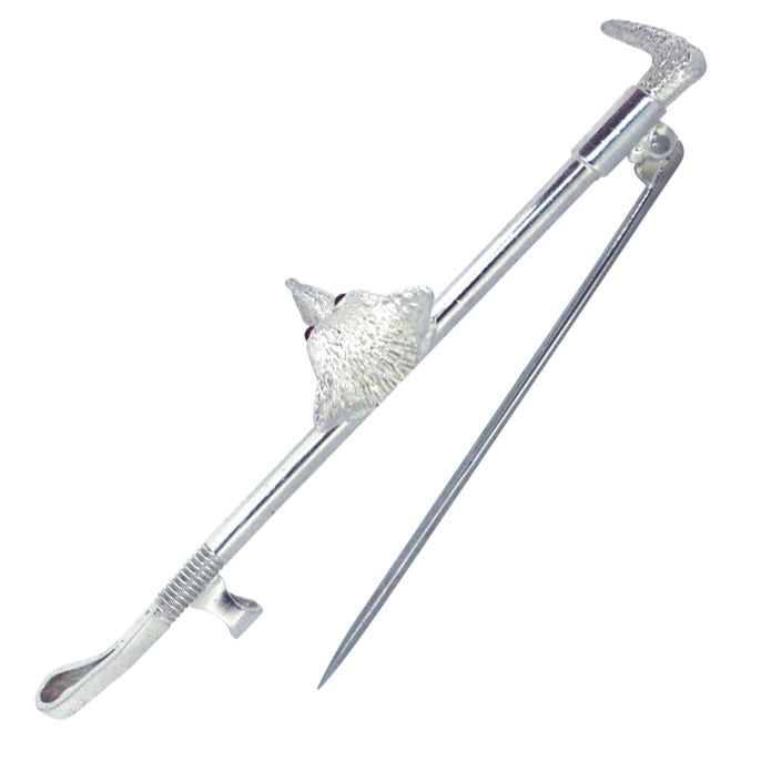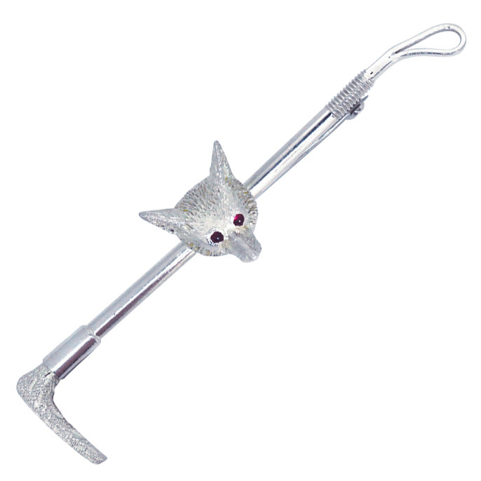 Silver whip stock pin with a fox head with ruby eyes to the centre. Circa 1930s.