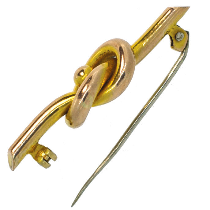 Victorian Stock Pin in the form of a chunky knot, marked '9ct' and tested with acid as 9ct rose gold, with a base metal pin and a safety roller catch added later, circa 1890