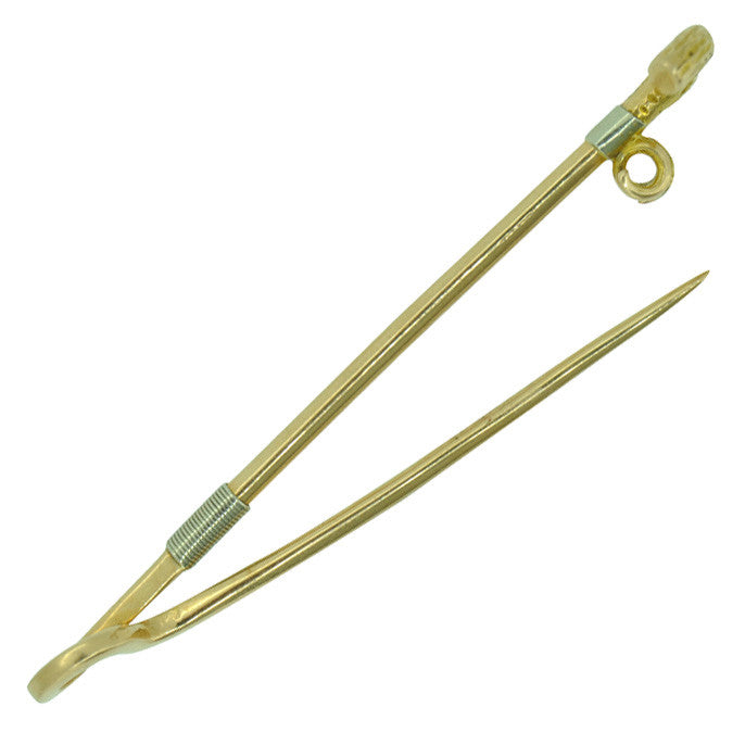 Hunting Stock Pin in the form of a Whip, marked '15ct' and tested with acid as 15ct yellow, rose and white coloured gold, circa 1920's