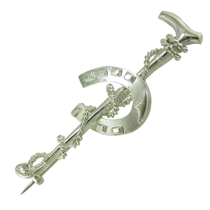 Victorian horseshoe and hunting whip bar. Tested with acid as silver, circa 1890.