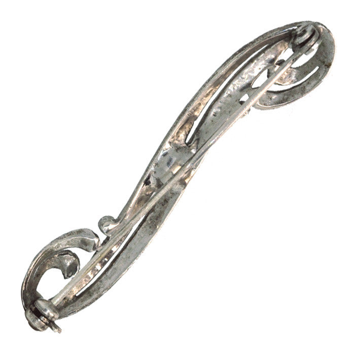 Silver marcasite stock pin with a cultured pearl set to the centre. Tested as silver, Circa 1960s.