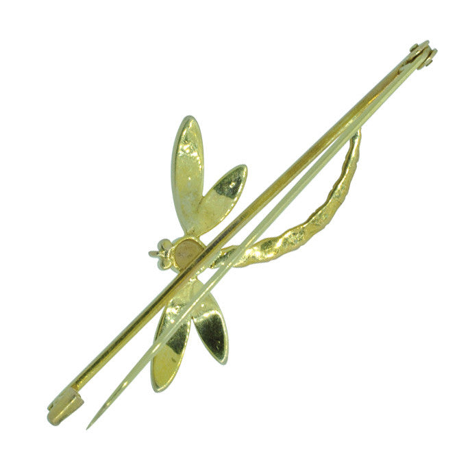 Edwardian Dragonfly stock pin set with pearls, tested with acid as 15ct yellow gold with 9cct yellow gold pin, circa 1910