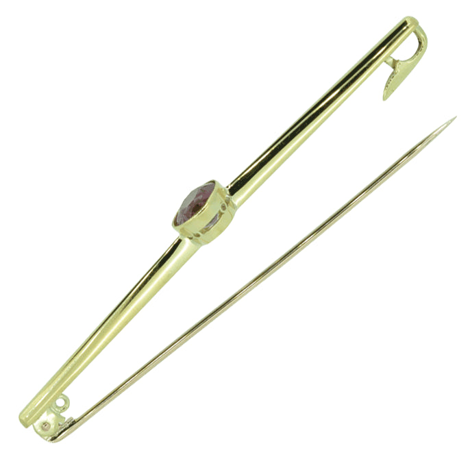 Edwardian single stone almandine rub-over set stock pin, tested with acid as 15ct yellow gold and marked '15', circa 1910