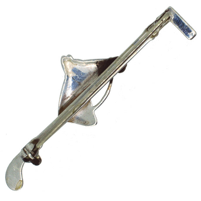 Stock Pin in the form of a whip with horses head to centre, marked 'stg.silver', tested with acid as silver with metal pin, with safety catch