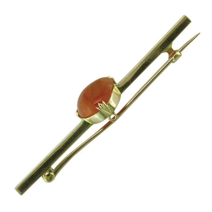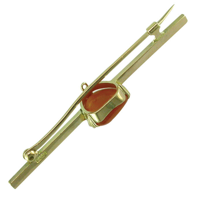 Stock pin set to centre with a single 'heart' shaped cornelian, tested with acid as 9ct yellow gold and stamped '9ct', circa 1920's