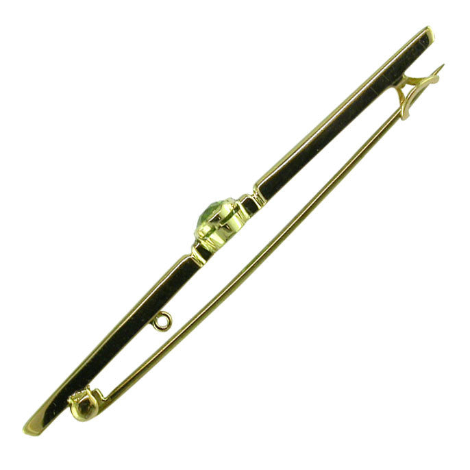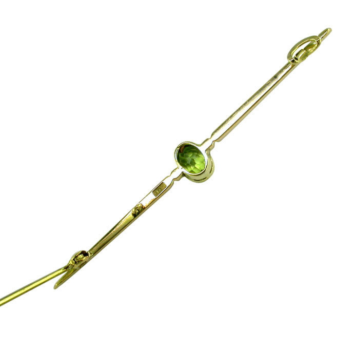 Stock Pin, set to the centre with an oval peridot on a plain bar, tested with acid and marked '9ct', circa 1930