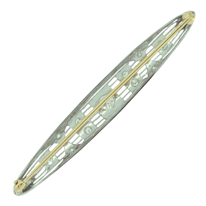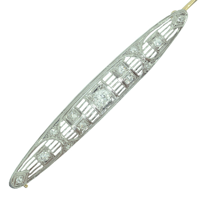 Stock Pin set with thirteen Victorian cut diamonds (total weight appx. 0.50cts), tested with acid as 9ct white gold, the pin 18ct yellow gold, circa 1930's with safety catch in origiinal old box