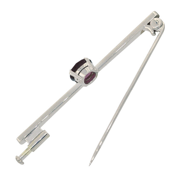 Single garnet set to the centre of a plain bar. Tested with acid as act white gold. Circa 1960's.