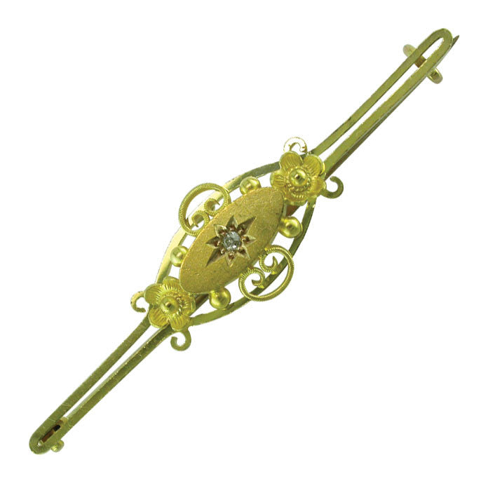 Victorian fancy stock pin set to centre with a single diamond, tested with acid as 15ct yellow gold and stamped '15ct'.